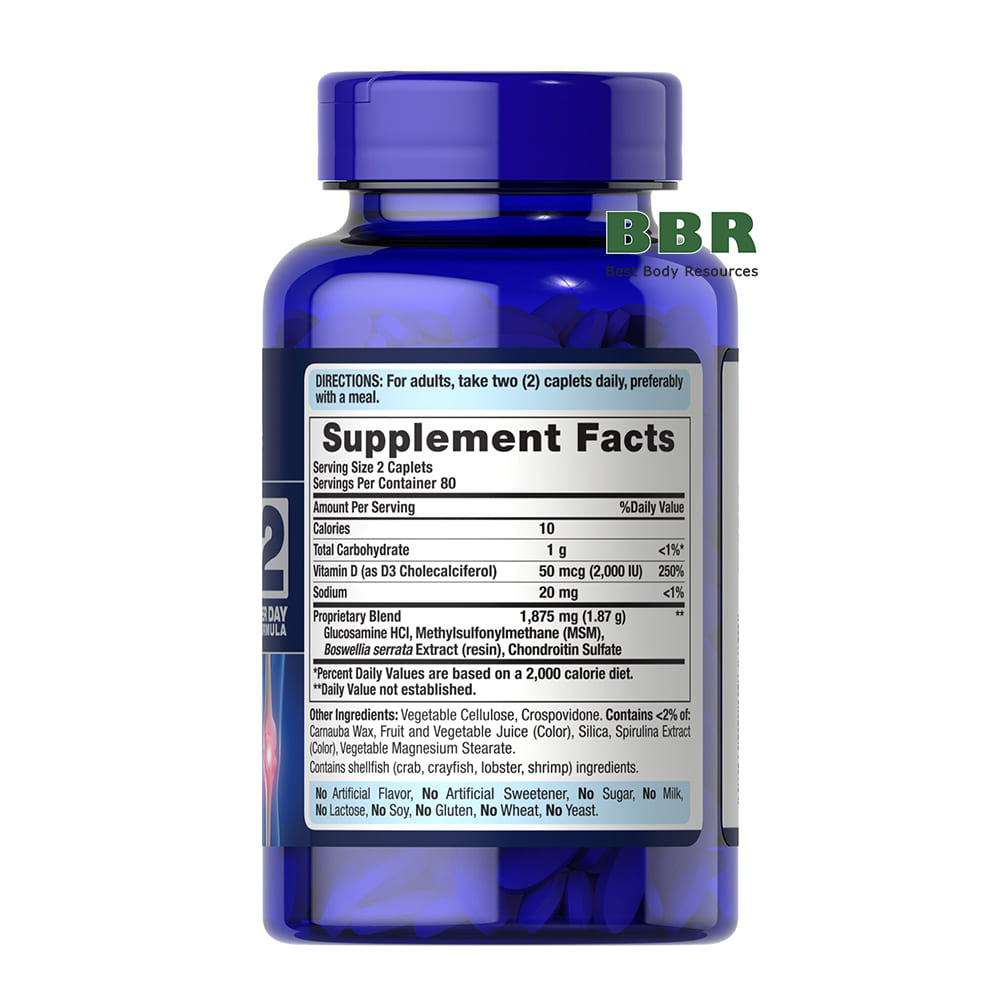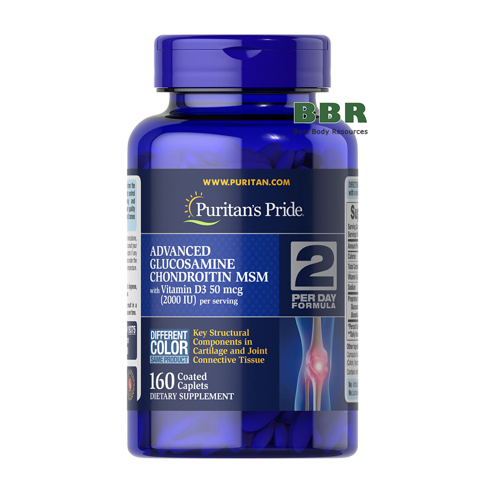 Состав Advanced Glucosamine Chondroitin with Vitamin D3 160 Caplets, Puritans Pride
