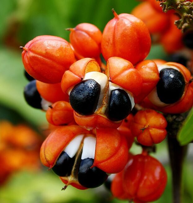 Гуарана – растение, вечнозеленый кустарник с красными плодами. Обитает в основном в Бразилии, Перу, Колумбии, а так же некоторых лесах Амазонки. Если вы когда-то видели это растение, то плоды будут схожи с человеческим глазом. Так же и в давние времена растению дали название «warana» — плод, похожий на глаза людей. Для получения всех полезных свойств используются семена плода, их вымачивают, высушивают, пережаривают и перетирают в порошок. В семенах содержится гуаранин, он же кофеин, но действует на организм мягче, ксантиновые алкалоиды (теобромин, теофиллин), танин, витамины группы В, витамин А, Е и РР. Иногда гуарану сравнивают с кофеином. Да, однозначно, в плане энергии они похожи, но все же отличаются.