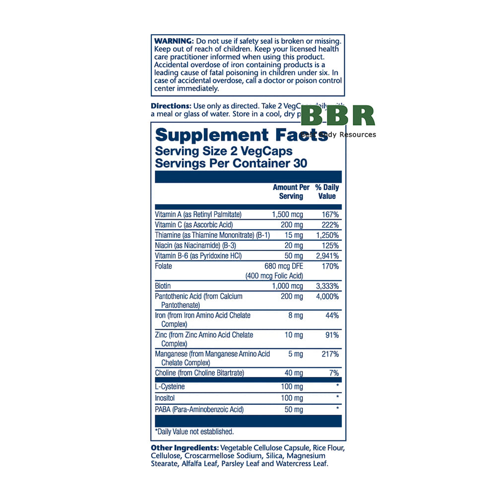 - Фолат (в виде L-5-метилтетрагидрофолат кальциевой соли) – 680 мкг (включая 400 мкг фолиевой кислоты)