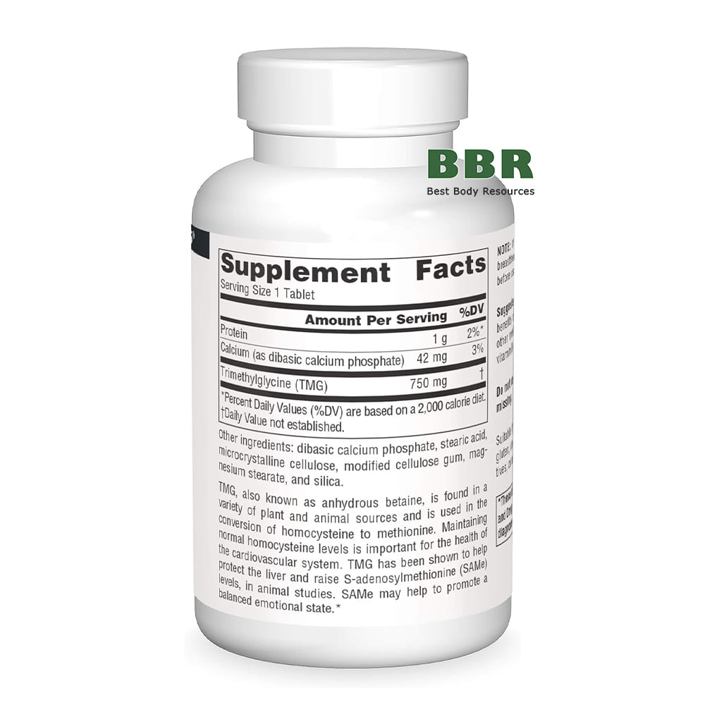 Склад TMG Trimethylglycine 750mg 60 Tabs, Source Naturals
