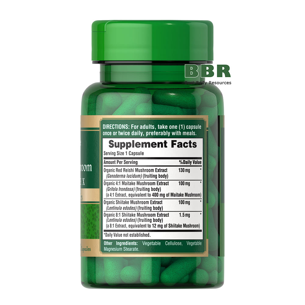 - Органічний екстракт гриба маітаке (Grifola frondosa) (плодове тіло) (екстракт 4:1, еквівалентний 400 мг гриба маітаке) - 100 мг